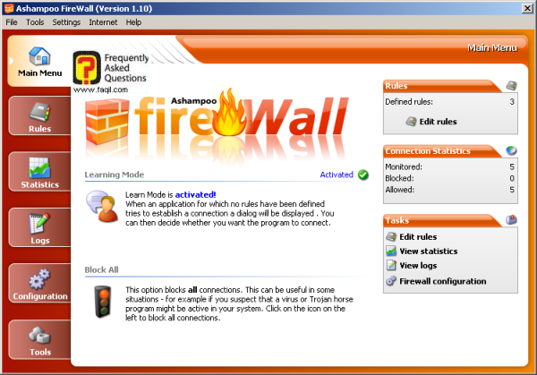 Configuration – משמש למשתמשים מנוסים, שיכולים להגדיר לבד את הפיירוול.