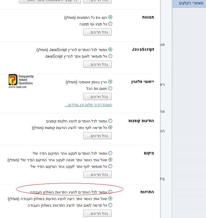 בוחרים בהתראות אפשר לכל האתרים להציג התראות בשולחן העבודה