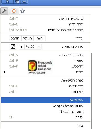 כרום, בוחרים בכלי עבודה, ולאחריו באפשרויות.