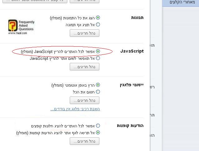 איך לאפשר הצגת ג'אווה סקריפט לכל