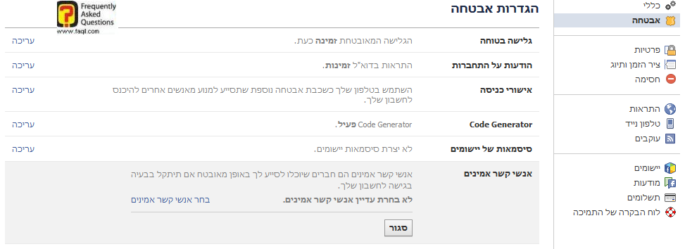 איך להגדיר אנשי קשר אמינים בפייסבוק?