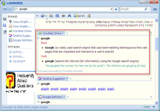 תוצאות האיות של גוגל, ואחרי כן, הגדרות של המונח מכל