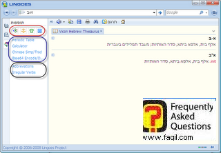 בכל אחד מהמילונים, אפשרות תרגום טקסט ומגוון אפשרויות נוספות (שכוללת טבלה הV1 V2 וV3 ,