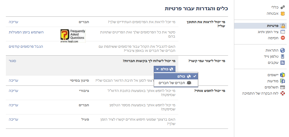 בלשונית פרטיות ב"מי יכול לשלוח לך בקשות חברות", הגדירו