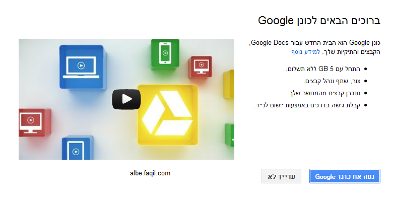 כעת יהיה באפשרותכם להשתמש בכונן גוגל.